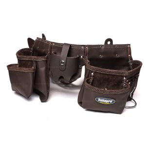 The Makita set features two spacious, deep compartments designed for hand tools and two medium-sized compartments ideal for screws or nails. Its side-gate hammer holder and four D-rings provide a reliable grip, even when working on scaffolding or ladders.
